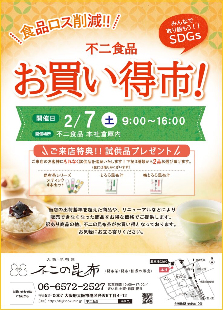 不二食品株式会社は、この度、『お買い得市』を2月7日(土)に開催いたします。