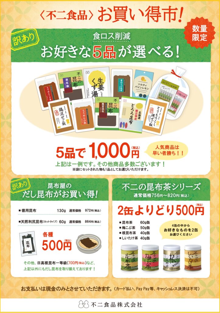 \食品ロス削減!!/不二食品お買い得市!